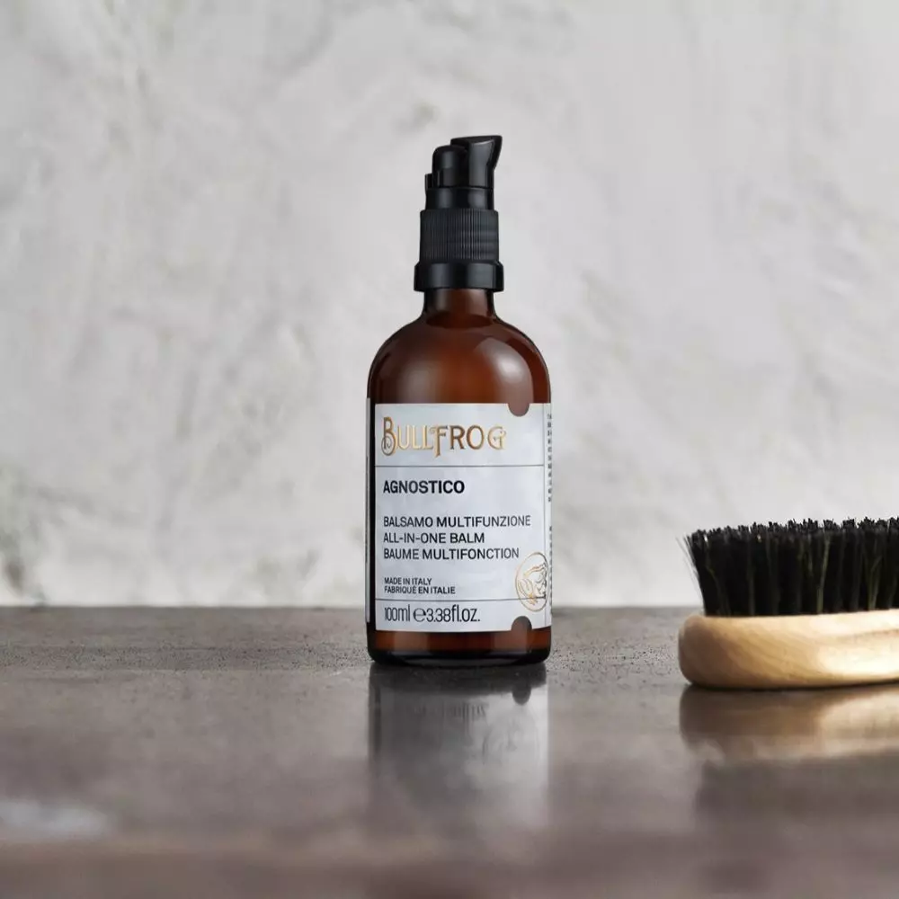 Multifunkčný balzam All-in-one Balm - Bullfrog je spoľahlivý kozmetický prípravok, ktorý sa hodí do mnohých situácií. Môžeš ho použiť ako klasický krémový, hydratačný balzam na bradu, upokojujúci balzam po holení alebo prípravok na vyživenie vlasov, ktorý ich pritom nezaťaží. Multifunkčný balzam All-in-one Balm - Bullfrog bude teda skvelou voľbou napríklad na cesty, keď chceš minimalizovať množstvo so sebou noseného batožiny.