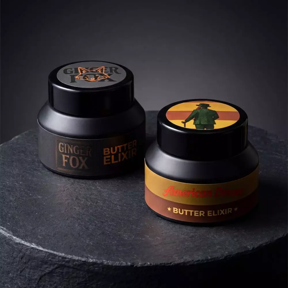 Balzam na bradu, pokožku a tetovanie Ginger Fox Butter Elixir - Jobski Cosmetics je očakávaným pokračovaním bestsellerovej série, ktorá si získala srdcia používateľov kultovým olejom Ginger Fox. Tento multifunkčný produkt od poľského výrobcu opiera svoju silu o mangové maslo, maslo illipe a kompozíciu siedmich vzácnych olejov, ako sú arganový a konopný, ktoré hĺbkovo vyživujú a hydratujú bradu aj pokožku pod ňou. Vďaka precízne zvoleným pomerom voskov zaisťuje balzam na bradu, pokožku a tetovanie Ginger Fox Butter Elixir - Jobski Cosmetics strednú fixáciu, ideálnu na každodenný styling fúzov, pričom na nich zanecháva úžasnú ovocno-gourmand vôňu, v ktorej sa šťavnatá čerešňa a malina stretávajú s tónmi whiskey a vanilky.