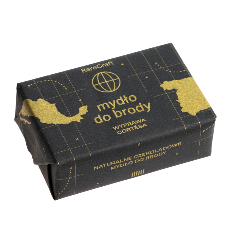 Mydlo na bradu Výprava Cortesa - RareCraft vyrobené v krakovskej manufaktúre má nepravidelnú textúru a vyrazené logo značky, balené v papierových obaloch. Ak vám vôňa čokolády a pomaranča vyhovuje, môžete vyskúšať aj ďalšie kozmetické produkty z tejto série, aby vám príjemné arómy sprevádzali každý deň.