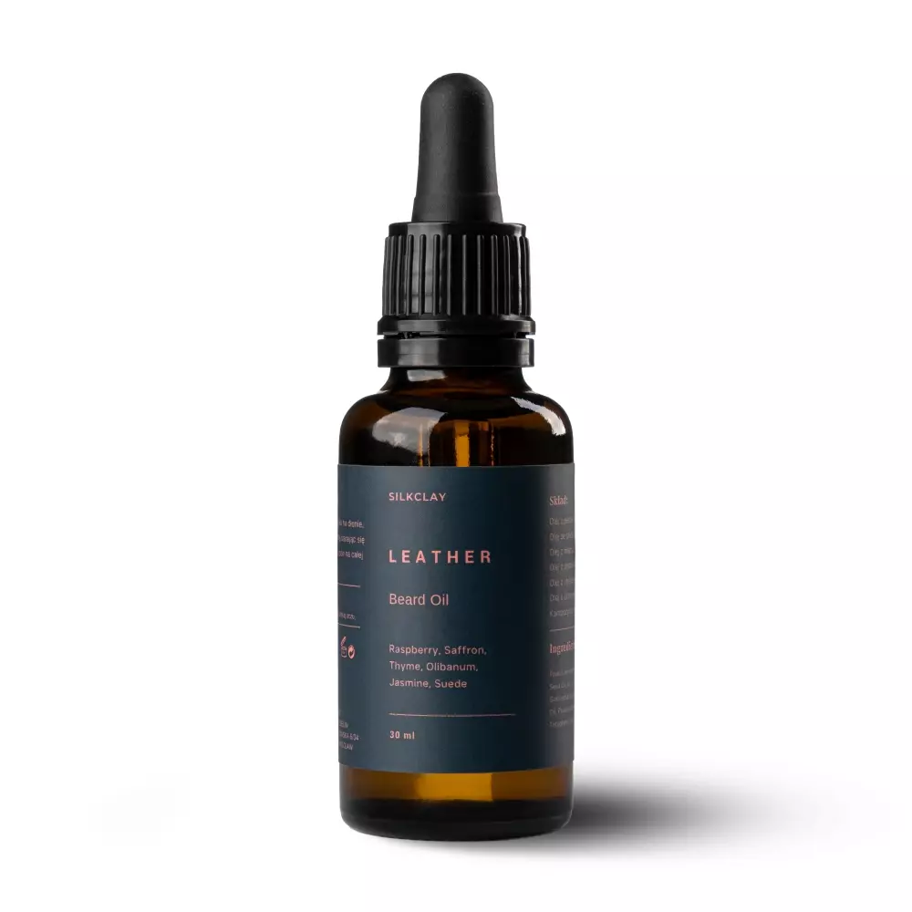 Okrem rastlinných olejov a vône, olejček na bradu Leather - SILKCLAY obsahuje tiež vitamín E, účinný antioxidant, chrániaci pred negatívnym vplyvom vonkajších faktorov. Celok je balený v klasickú fľaštičku s hygienickou pipetou a elegantnou etiketou v minimalistickom štýle, charakteristickom pre túto mladú poľskú značku, ktorá si už získala mnoho fanúšikov vďaka prírodným kozmetickým produktom na úpravu vlasov.
