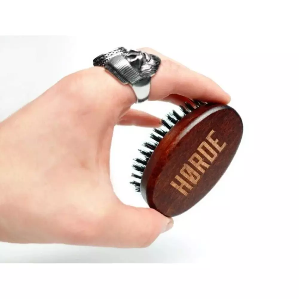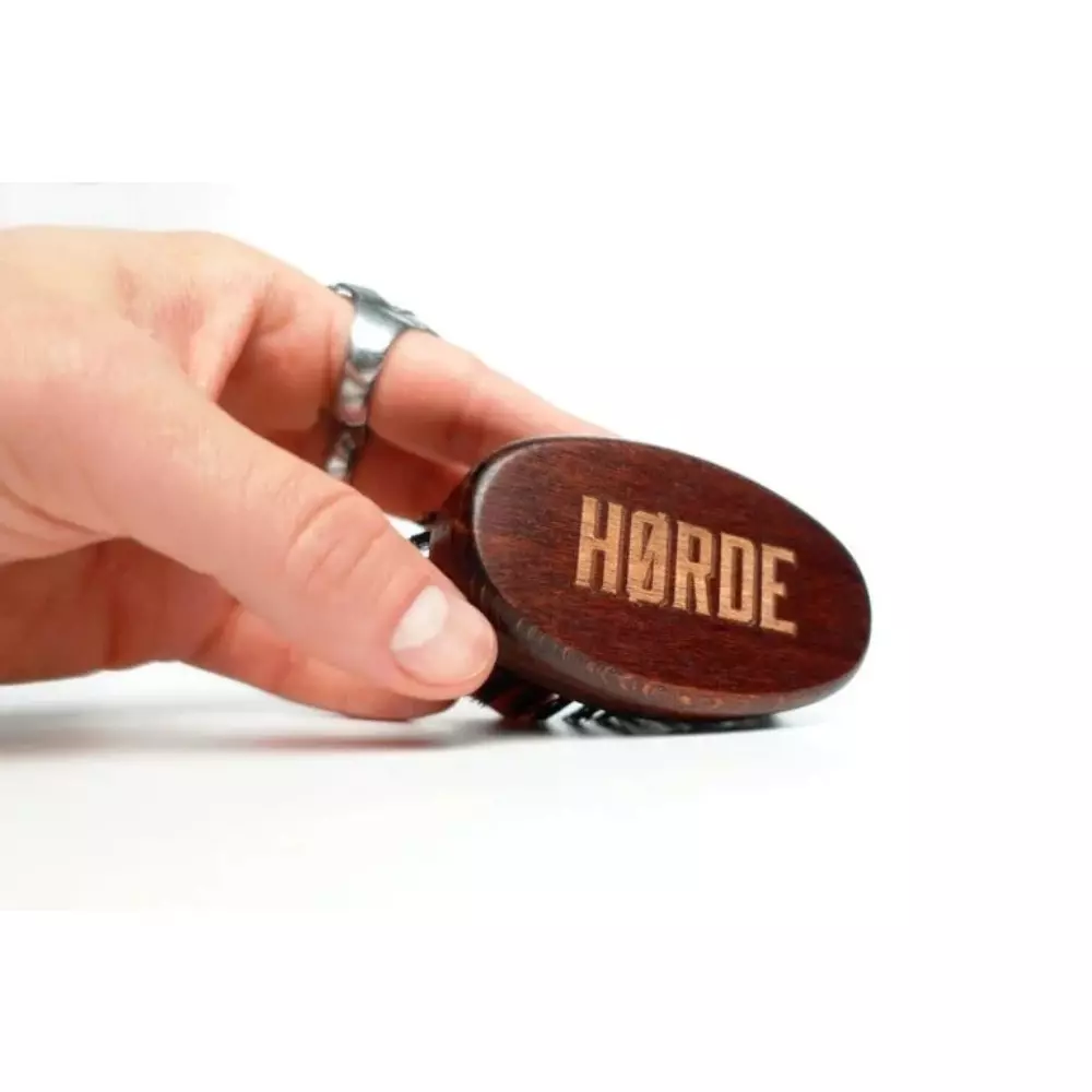 Za rozčesávanie fúzov je zodpovedný tvrdý a tuhý štetec z diviaka. Chlp bola nasadený na rukoväť v ôsmich radoch, pod ergonomickým uhlom 88°, vďaka čomu kefa na bradu - Horde efektívne a veľmi presne rozčesáva fúzy. Vyrobený z prírodných materiálov kefa poslúži veľa rokov, nezabudni iba sušiť s chlpom smerom nadol.