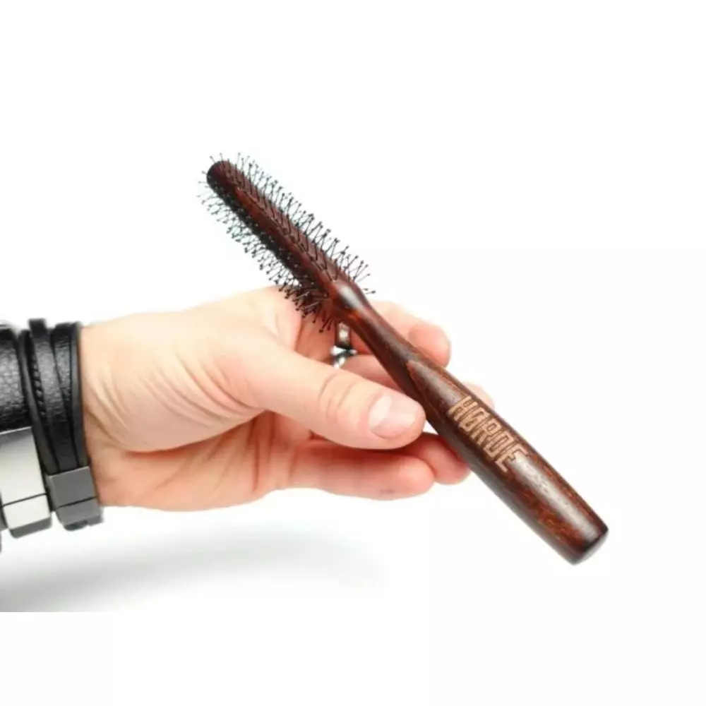 Roller na bradu a vlasy - Horde je guľatý kefa na styling, ktorý sa dokonale hodí na rovnanie a ukladanie účesu. Rukoväť je vyrobená z prírodného bukového dreva, získaného v Jurze Krakowsko-Čenstochovskej. Na rukoväť sú nasadené nylonové zúbky, zakončené živicovými guľôčkami, ktoré zabezpečujú elektrostatickú činnosť a zabraňujú elektrizovaniu vlasov.