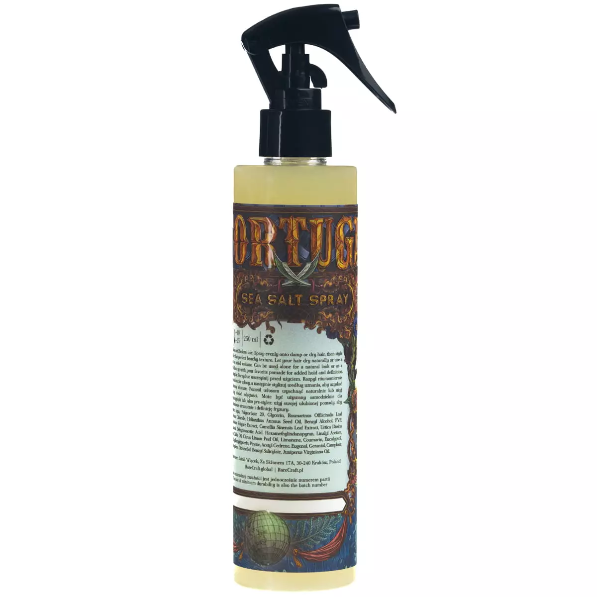 Sea Salt Spray Tortuga - RareCraft sa vyznačuje výnimočnou tropickou vôňou ovocia, pričom jeho formula založená na rastlinných extraktoch sa stará o zdravie a vzhľad vlasov. Produkt má prirodzený, ľahký úchop, vďaka čomu je ideálny na styling s prirodzeným vzhľadom. Praktická fľaštička s rozprašovačom umožňuje presnú aplikáciu, a dizajn vytvorený v spolupráci s poľským umelcom Alkom „Liskułą“ Morawskim mu dodáva jedinečný charakter.