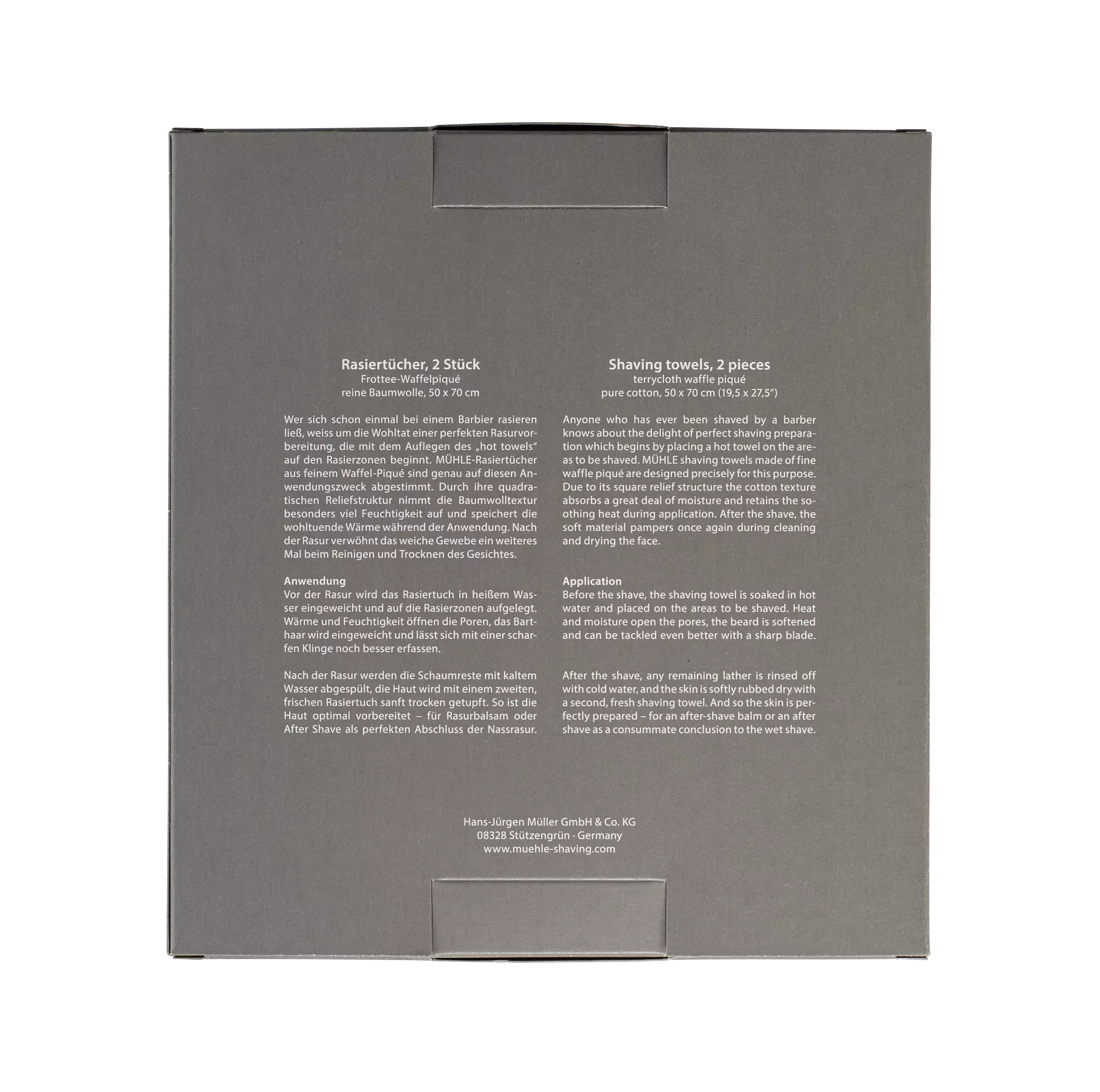 Súprava uterákov na holenie T1 - Mühle je vynikajúcou ponukou na vykonanie techniky hot towel. Dva uteráky vyrobené z veľmi savého bavlneného materiálu skvele držia teplo. Súprava uterákov na holenie T1 - Mühle bola vyrobená v Európe zo 100% bavlny s vaflovou štruktúrou. Celok je zabalený v elegantnej krabičke a môže byť výborným nápadom na darček pre blízku osobu.
